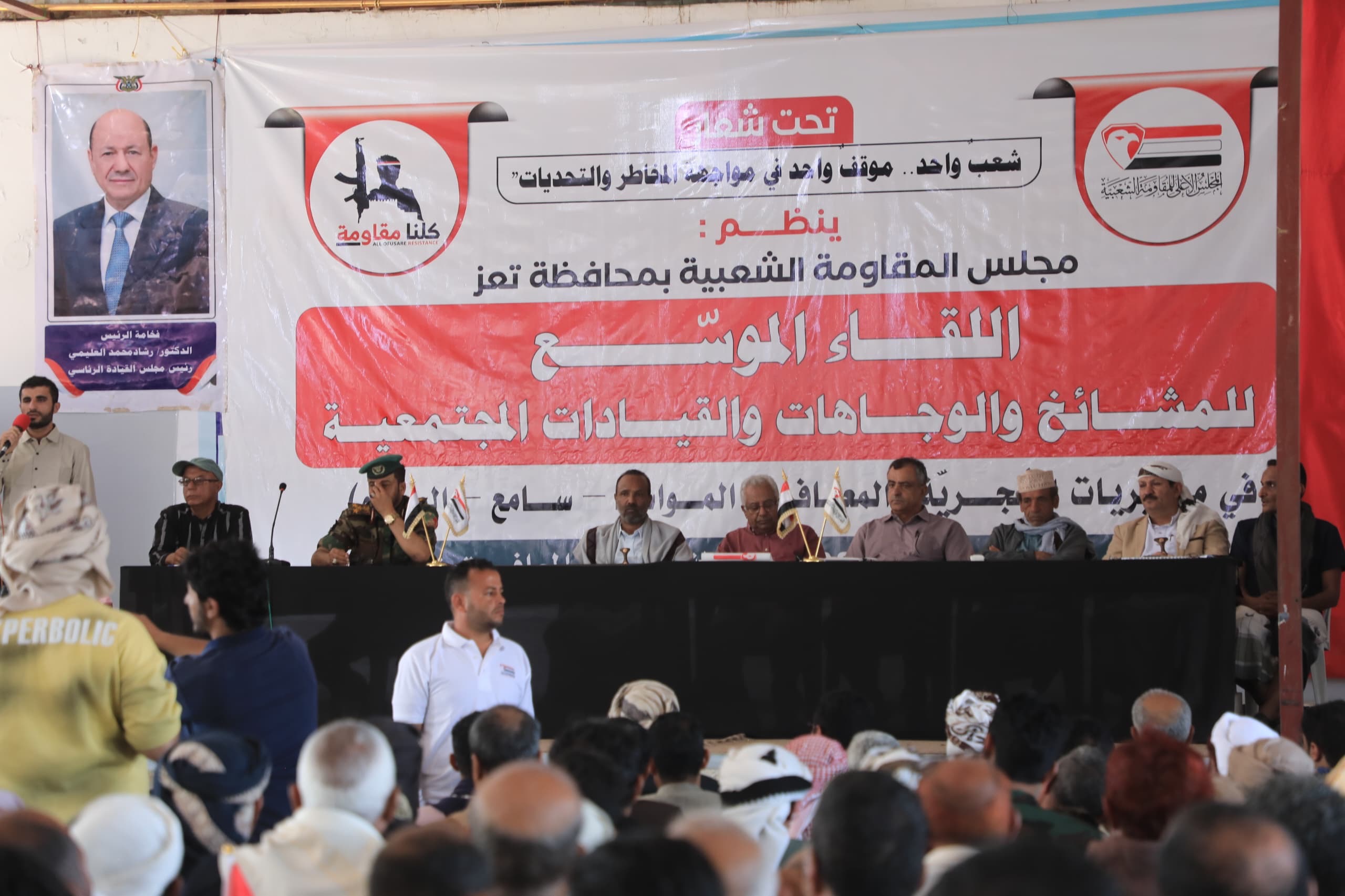 لقاء موسع لمشائخ ووجهاء الحجرية يؤكد دعم الرئيس العليمي واستمرار المقاومة الشعبية حتى إنهاء الانقلاب الحوثي