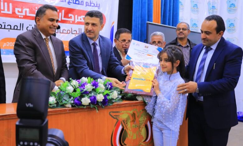 وفي المهرجان الذي حضره نائب وزير التربية والتعليم والبحث العلمي بصنعاء د. حاتم الدعيس وأمين عام الجامعة د. صفوان الجبر