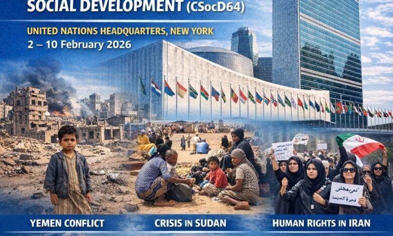 Throughout its participation, the Association linked the rapidly evolving developments in Yemen to the session’s agenda items on social protection, youth empowerment, poverty eradication, and social justice. It emphasized that achieving the Sustainable Development Goals in conflict-affected countries—foremost among them Yemen—requires addressing the root causes of conflict, ensuring comprehensive international accountability for all parties to the conflict without selectivity, and integrating development pathways with peace and human rights.