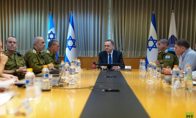 وزير الدفاع الإسرائيلي يسرائيل كاتس (وسط) خلال تقييم أمني عقده في مقر وزارة الدفاع في تل أبيب. / RT