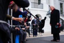 الرئيس الأميركي دونالد ترمب يتحدث إلى وسائل الإعلام في الحديقة الجنوبية بالبيت الأبيض. 22 نوفمبر…