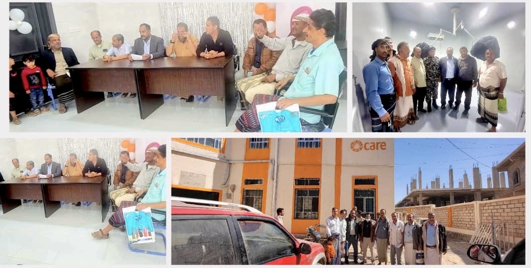 مدير عام قعطبة الشاعري ومدير الصحة ومهندس كير العالمية يستلمون مركز الطوارئ التوليدية من المقاول المنفذ.