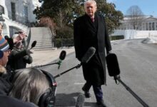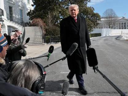 الرئيس الأميركي دونالد ترمب يتحدث إلى الصحافيين عند مغادرته قاعدة أندروز الجوية في ولاية ماريلاند…