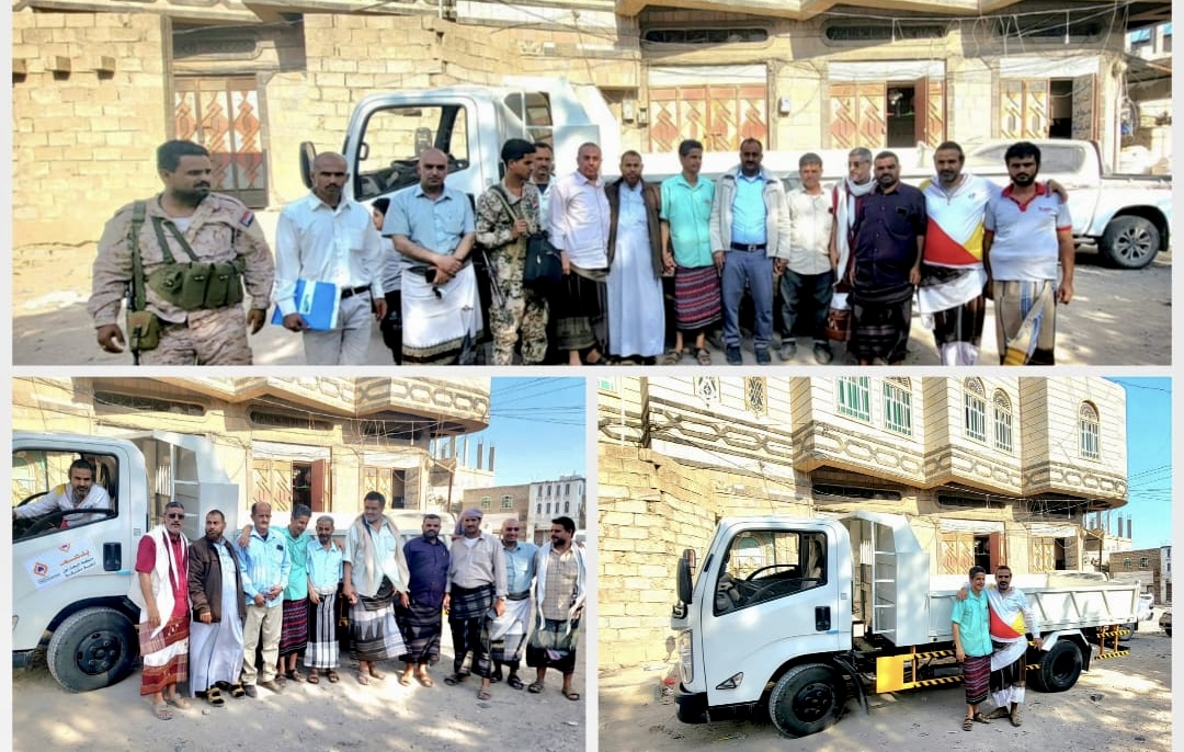 مدير عام قعطبة بكر الشاعري يستلم دعماً من منظمة البحث عن ارضية مشتركة لصندوق النظافة والتحسين بالمديرية.
