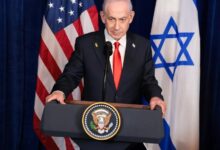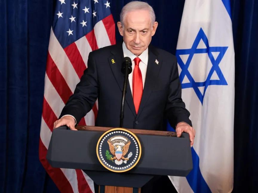 رئيس الوزراء الإسرائيلي بنيامين نتنياهو يتحدث خلال مؤتمر صحافي مشترك مع الرئيس الأميركي دونالد ترمب…