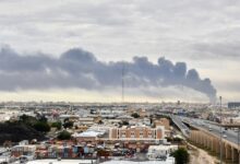دخان يتصاعد من مطار الكويت الدولي بعد غارة جوية بطائرة مسيرة استهدفت مخزنا للوقود في…