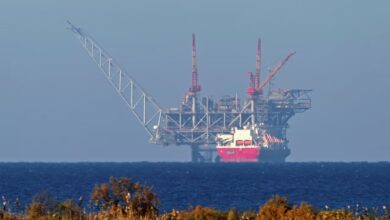 منصة حقل ليفياثان للغاز الطبيعي في البحر الأبيض المتوسط بصورة تم التقاطها من مدينة قيسارية شمال إسرائيل في 19 ديسمبر…