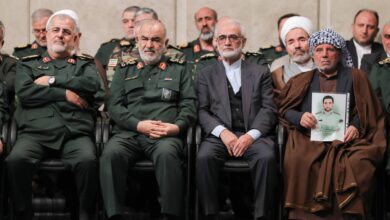 قائد ” الحرس الثوري” حسين سلامي وعلى يمينه قائد القوات البرية محمد باكبور خلال لقاء مع خامنئي (موقع المرشد) عين…