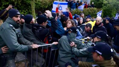 اشتباكات بين المتظاهرين الإسرائيليين والشرطة خلال مظاهرة خارج مقر إقامة رئيس الوزراء في القدس في 20 مارس 2025. AFP –…