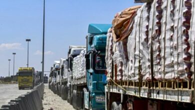 80 شاحنة مساعدات من دمياط امام معبر رفح للانطلاق الى قطاع غزة