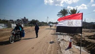 /فلسطينيون يمررون العلم المصري على جانب شارع في بيت لاهيا ، شمال قطاع غزة ، 25 يناير ، 2022.(AP Photo/Khalil…