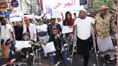 الاصلاح يستخدم ملف الجرحى كتجارة رابحة .. .. احتجاجات جرحى الحرب.. صرخة جديدة ضد فساد محور تعز الإخواني