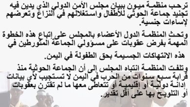 منظمة ميون ترحب بتنديد مجلس الأمن بتجنيد الحوثيين للأطفال واستغلالهم جنسياً
