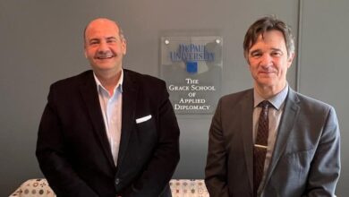 – بدعوة من عميد كلية الدراسات الدبلوماسية بجامعة De Paul University بشيكاجو،