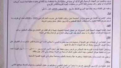 عدن: فيما تصر نقابة المعلمين والتربويين الجنوبيين – العاصمة عدن استمرار الإضراب الشامل في جميع المدارس للعام الدراسي 2025م – 2026م …. صحفي وإعلامي بارز يوجه رسالة إلى المعلمين ويخاطبهم مباشرة