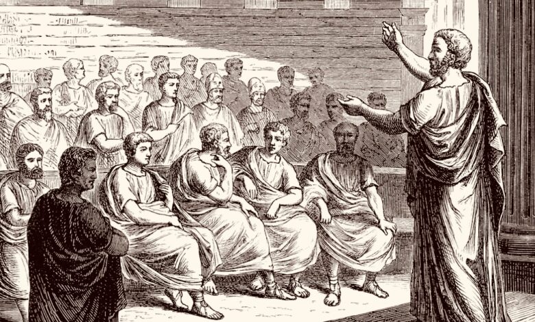 Plato’s idea that the state should be governed by suitably selected and suitably trained philosophers, with his rapture of specialization (everyone should mind his own business, and only that which he is naturally predisposed to), did not find democracy attractive [12]. The Athenian philosopher is distinguished by dislike for any kind of thick and noisy crowd, whether in a popular assembly, court, theater or military camp (Rep., 492b), the crowd is “a huge beast” (493c). His definition of democracy is eloquent: “Democracy … is realized when the poor, having won, destroy some of their opponents, others are expelled, and the rest are equalized in civil rights and in the replacement of public posts, which in a democratic system occurs mostly by lot” (557a)[13]. It would seem