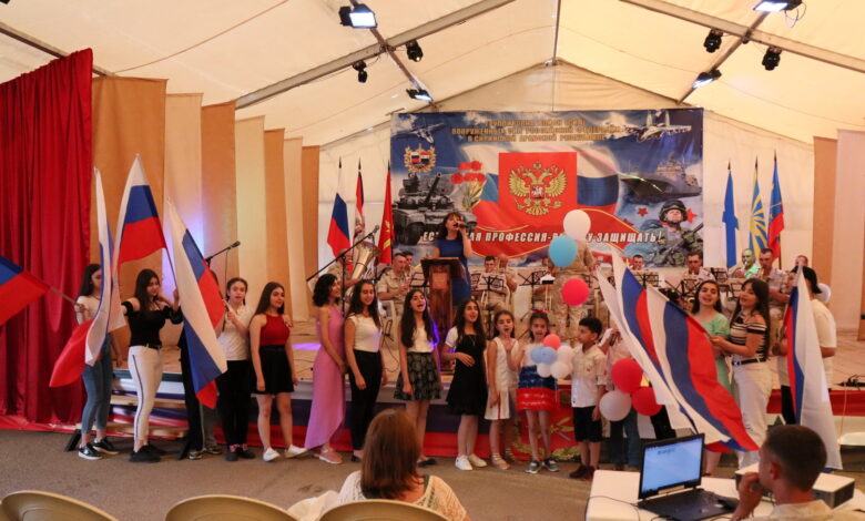 وأقيمت احتفالية في القاعدة الجوية، حيث كانت مفاجأة بانتظار الجنود حين حضر طلاب من فريق المبدعين السوري “عشتار” التابع لمركز تعليم اللغة الروسية “الراهب” من مدينة جبلة لتهنئة الجنود الروس بيوم روسيا.