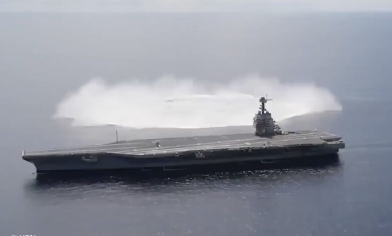 اختبر الجيش الأمريكي حاملة الطائرات “يو إس إس جيرالد آر فورد” بتفجير ضخم يحاكي تعرضها لهجوم من العدو المفترض.