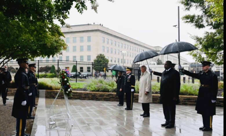 وشكر وزير الدفاع لويد أوستن، في كلمته، عناصر القوات المسلحة على تضحياتهم وخدماتهم، مؤكدا أن الولايات المتحدة “تتذكر اليوم أرواح ضحايا هجمات 11 سبتمبر الإرهابية”.