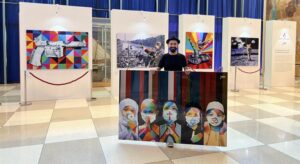 وتحدث السيد إدواردو كوبرا، عن عمله الفني الجديد الذي ظل يلفت أنظار المارة طوال الأسبوع، قائلا إن الموضوعات التي تناولتها اللوحة الجدارية عالمية وعاجلة.