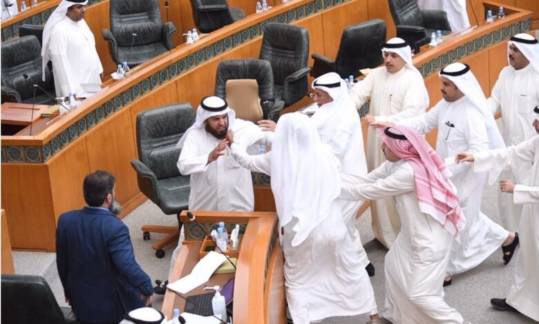 معركة طاحنة واشتباك با الايدي بين نواب البرلمان الكويتي..