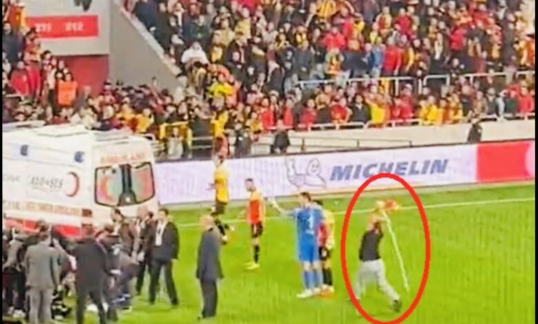 مشاهد صادمة شهدتها مباراة لكرة القدم في تركيا، حيث اعتدى مشجع على حارس مرمى، مستخدما عصا الراية الركنية، مما أدى إلى إصابته في الرأس.