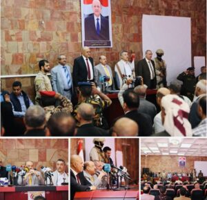 وهنا ابدا بأن انقل لكم تحيات فخامة الاخ رئيس مجلس القيادة الرئاسي وأعضاء المجلس الرئاسي وتحايا الاخ رئيس مجلس الوزراء وجميع القيادات العليا التي تكن للمحافظة كل الحب والاحترام والتقدير وتثني على مواقفها، وندرك حجم الألم الذي تعيشه المحافظة وعليكم أن تدركوا أيضا حجم الألم والأنين الذي نعيشه نحن القيادات خاصة القيادات العليا عندما نسمع عن الكبوات في تعز وعن الاختلالات الموجودة فيها وعن الاختلافات التي أنستنا الحوثي والعدو الغاشم وذهبنا إلى مربع الاصطياد والاختلاف والتمزق وذهبنا الى توجيه السهام إلى بعضنا البعض.