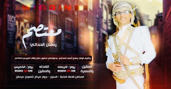 تهنئة لشاب الخلوق/ المعتصم ردفان احمد الحدائي بمناسبة عقد قرانه وحفل الزفاف