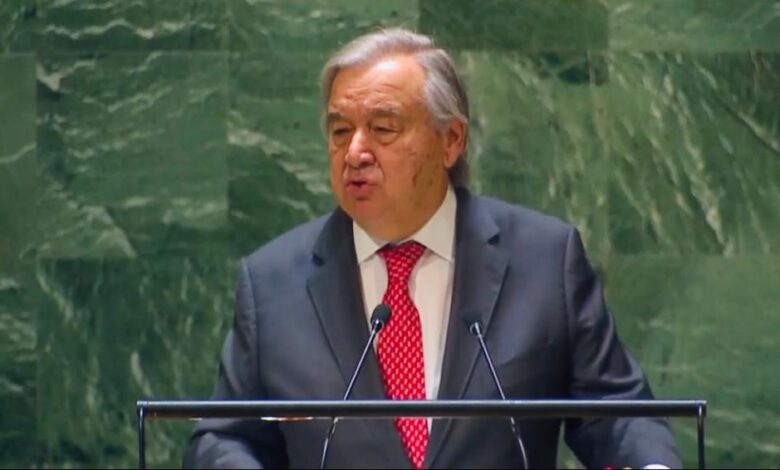 لكن الأمين العام قال إننا في “ورطة كبيرة”، محذرا من أننا “نستنزف شريان الحياة البشرية من خلال الاستهلاك المفرط والاستخدام غير المستدام، وتبخره من خلال الاحتباس الحراري” وأضاف:
