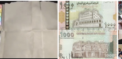 وتداول نشطاء على موقع التواصل الاجتماعي في الفيس بوك، مقطع فيديو، يكشف طريقة الحوثي في تزوير العملة، وهي مكونة من ورق بيضاء مع الخيوط السرية لفئة 1000 ريال طبعة 2006.