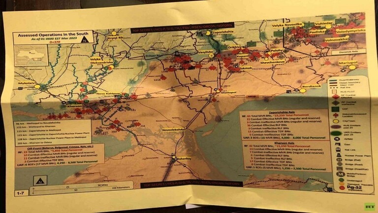 وتتضمن المواد المنشورة معلومات عن توزع أنظمة الدفاع الجوي الأوكرانية، وعن استهلاك الجيش الأوكراني لقذائف المدفعية، وكذلك تقييمات للوضع حول أرتيومفسك.