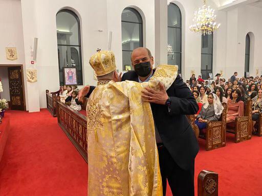 – كان في الاستقبال بالكنيسة عميد الجاليه القبطية المهندس كميل حليم والعمده المصريه الامريكيه ماري بسطا واركان الجاليه المصري حيث نقل السفير د سامحً ابوالعينين تهاني السيد رئيس الجمهورية بعيد القيامه المجيد للجالية المتميزه في وسط الغرب الامريكي .