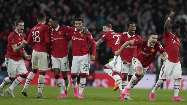 ضرب مانشستر يونايتد موعدا مع جاره مان سيتي في نهائي كأس إنجلترا بفوزه على برايتون 7-6 بركلات الترجيح، بعد نهاية الوقتين الأصلي والإضافي بالتعادل السلبي في نصف النهائي يوم الأحد.
