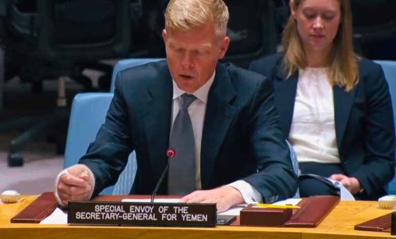 جاء ذلك خلال إحاطة قدمها إلى مجلس الأمن الدولي اليوم، تحدث خلالها عن حصيلة جولته الأخيرة والمستجدات اليمنية، وقال “تبيِّن التقارير المستمرة حول العنف على مختلف الجبهات، خاصَّةً في الجوف وتعز ومأرب وصعدة، هشاشة الوضع الحالي وتؤكد على الحاجة إلى وقفٍ رسميٍ لإطلاق النار”.