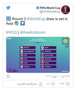 أجرى الاتحاد الآسيوي لكرة القدم، قرعة التصفيات النهائية المؤهلة إلى كأس العالم 2022 المقرر إقامتها في قطر، بمشاركة 12 منتخبا.