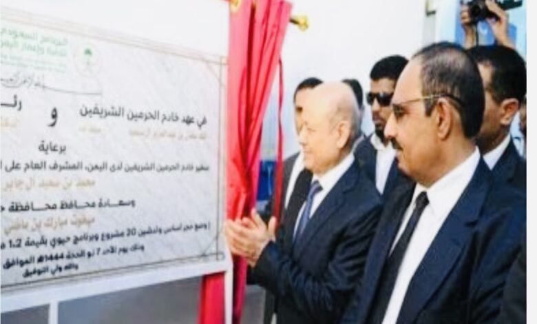 دشن رئيس مجلس القيادة الرئاسي اليمني ، اليوم الاحد، 20 مشروعا انمائيا، بدعم سعودي في محافظة حضرموت (شرق البلاد).