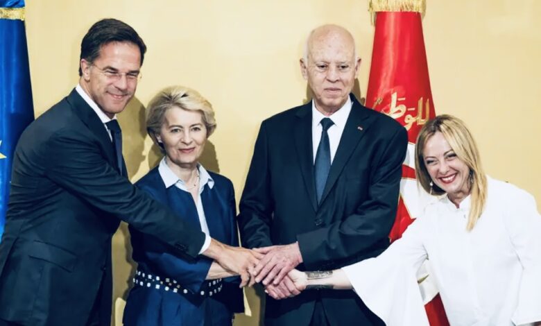 اجتمعت رئيسة المفوضية الأوروبية أورسولا فون دير لاينورئيسة وزراء إيطاليا جورجيا ميلوني ونظيرها الهولندي مارك روته مع الرئيس التونسي قيس سعيّد في تونسووقعوا معه على مذكرة تفاهم من أجل تعاون أفضل مستقبلا.