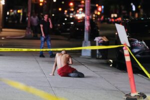 تتصاعد التوترات تدريجيًا مع تواجه المجموعتين وتبادل الكلام لعدة دقائق. تفرق الجانبان لفترة قصيرة ثم يتجدد التصادم بينهما، وتظهر اللقطات تطور المشاجرة إلى صراع بدني في الخلفية، حيث يظهر الضحية وهو يقف وراء سيارة رياضية متعجبًا بعد تعرضه للطعن.