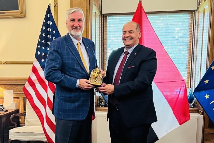 قامً السفير د سامحً ابوالعينين بزياره لولايه انديانا امس بدعوه من حاكمً الولايه Eric Holcomb