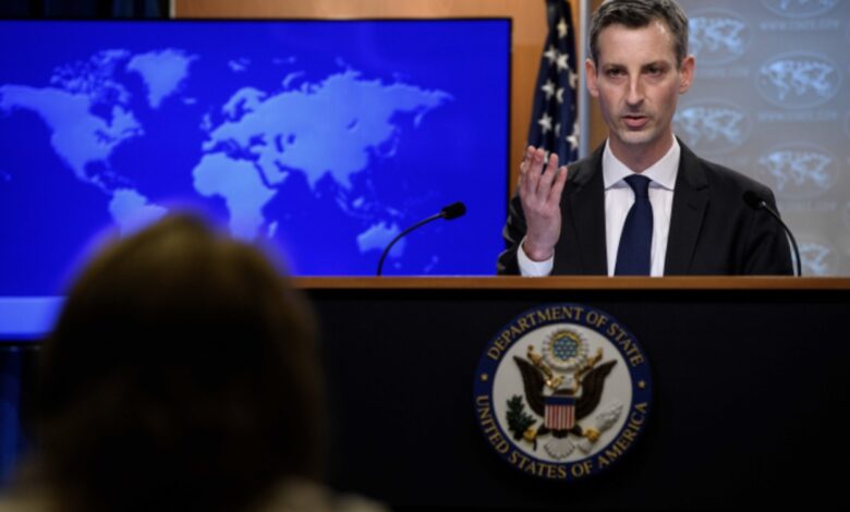 دعا المتحدث باسم الخارجية الأميركية، نيد برايس، جميع الأطراف المعنية بملف سد النهضة إلى الامتناع عن أي إجراءات أحادية يمكنها أن تزيد التوترات وتبعد الأطراف عن الحل السلمي والبناء.