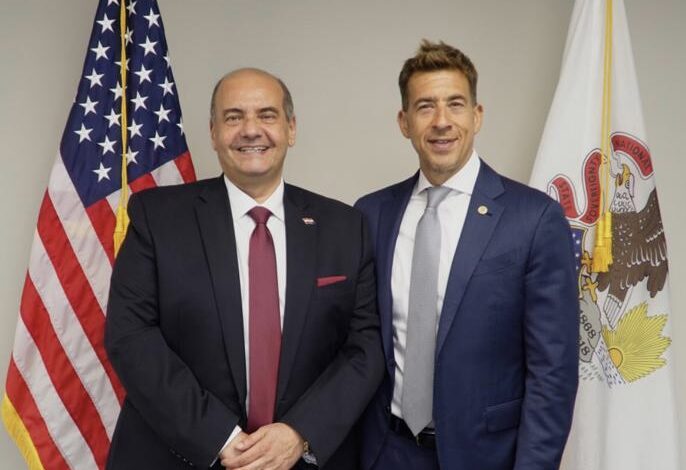 سكرتير عام ولايه الينوي يشيد بمصر خلال توديعه السفير د سامحً ابوالعينين.
