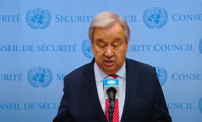 أدان الأمين العام للأمم المتحدة، بأشد العبارات، الهجوم الذي شنته حركة حماس، هذا الصباح، على بلدات إسرائيلية قريبة من قطاع غزة ووسط إسرائيل- بما في ذلك إطلاق آلاف الصواريخ باتجاه المراكز السكانية الإسرائيلية.