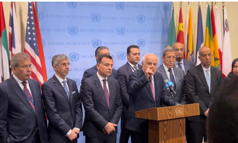 المجموعة العربية خلال مؤتمر صحفي بالأمم المتحدة: لو تدخل مجلس الأمن بالأمس لما حدث استهداف المستشفى اليوم