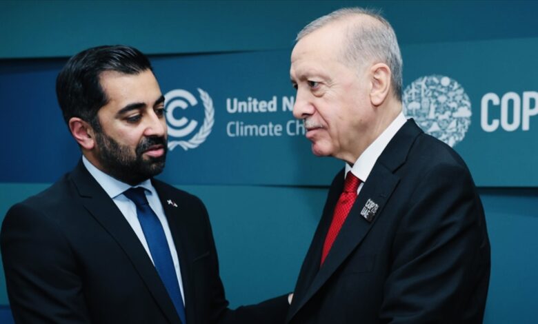 ومطلع ديسمبر/ كانون الأول الجاري، التقى الرئيس التركي رجب طيب أردوغان، رئيس الوزراء الأسكتلندي حمزة يوسف في دبي، حيث عقدت القمة العالمية للعمل المناخي في نطاق المؤتمر الثامن والعشرين لأطراف اتفاقية الأمم المتحدة الإطارية بشأن تغير المناخ “COP28”.
