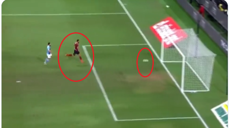 وتقدم ريان بالكرة صوب المرمى الخالي من حارسه وبدلا من وضعه الكرة في الشباك بكل هدوء سددها المهاجم بقوة لترتطم بالقائم وتضيع فرصة نادرة.