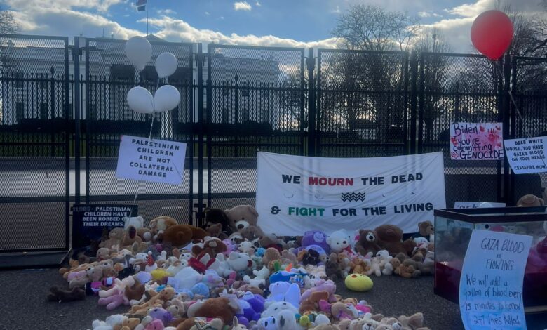من امام البيت الابيض : مظاهرات ضد سياسة بايدن الداعمة لإسرائيل