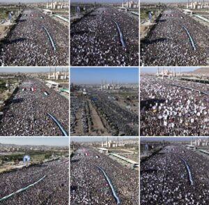 عكست المسيرات الحاشدة التي تشهدها اليمن – في المناطق الواقعة تحت سيطرة أنصار الله – عمق التضامن الشعبي اليمني مع قطاع غزة ورفضا للعدوان االصهيوني، كما أكدت المسيرات على استمرار دعم اليمن للقضية الفلسطينية حتى تحقيق النصر.