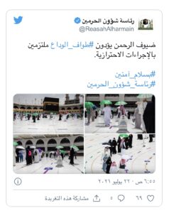 وسخرت الرئاسة العامة لشؤون المسجد الحرام و المسجد النبوي في السعودية الإمكانات البشرية والتقنية كافة وتوفير سبل الراحة للحجاج، ومع تطبيق الإجراءات الاحترازية والتباعد الجسدي.