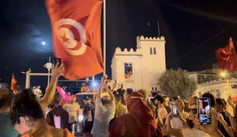 تدفق آلاف التونسيين إلى شوارع العاصمة بعد إعلان الرئيس التونسي قيس سعيد إطاحته بالحكومة وتجميد أعمال البرلمان وذلك للإشادة بهذه الخطوة التي استنكرها منتقدوه ووصفوها بأنها انقلاب.