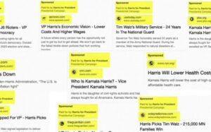 وفي إعلانات متعددة، اتُهمت حملة “هاريس-والز” بتحرير عناوين الأخبار من صحيفة “الغارديان” ووكالة “رويترز” ووكالة “أسوشيتد برس”، وشبكة “سي إن إن”، وغيرها. ورغم أن الإعلانات تحمل تصنيف “ممول”، فإن القراء قد يشعرون بالحيرة بشأن من الذي كتب العناوين.